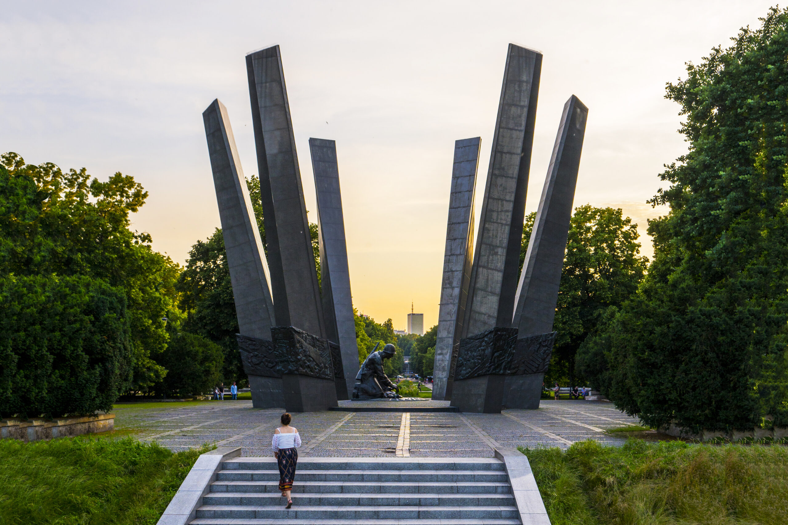 Warsaw, Glory to Sappers Monument, monument, park, Marshal Edward Rydza-Smigly Park, park alley, bench, sculpture
