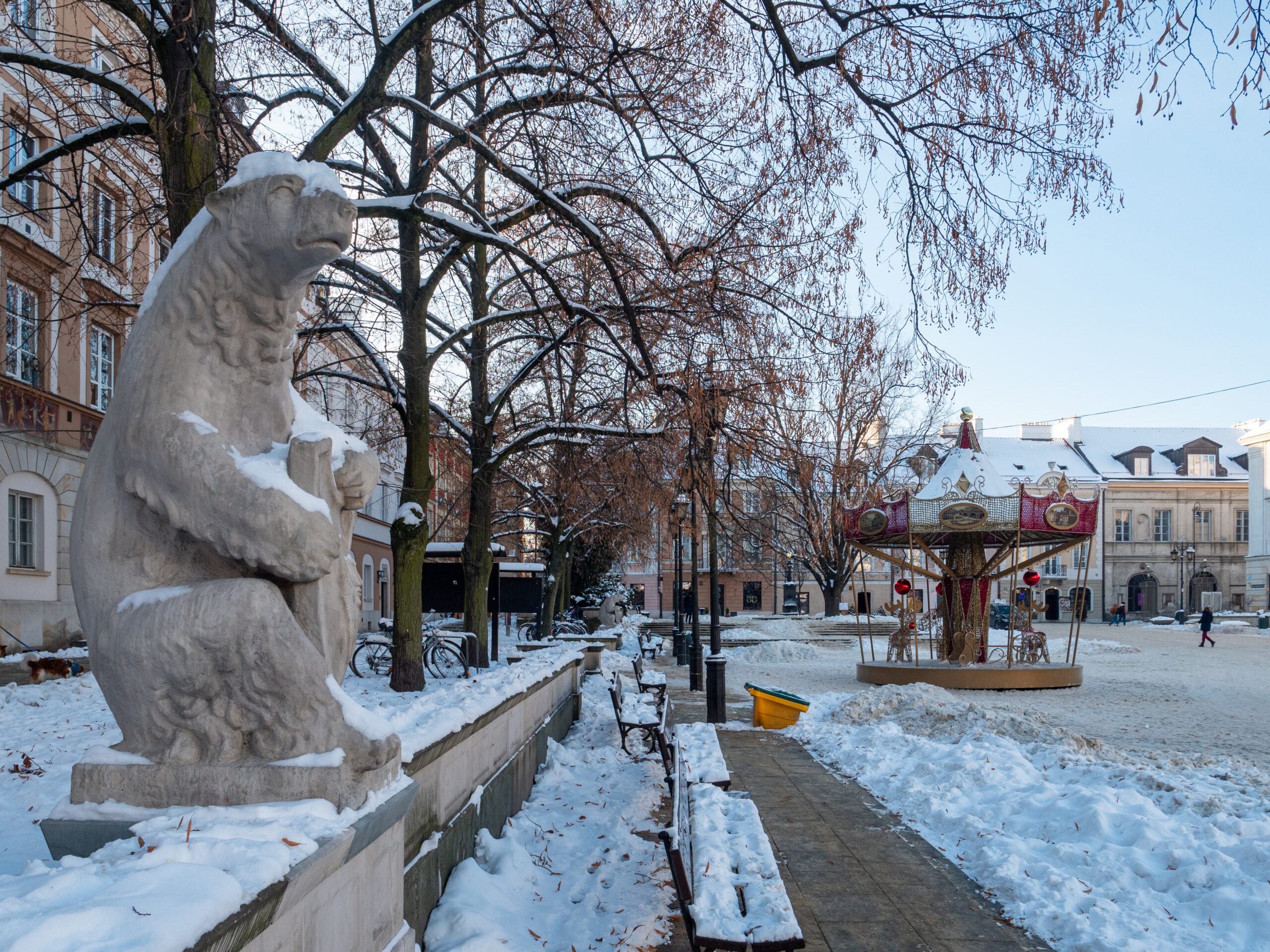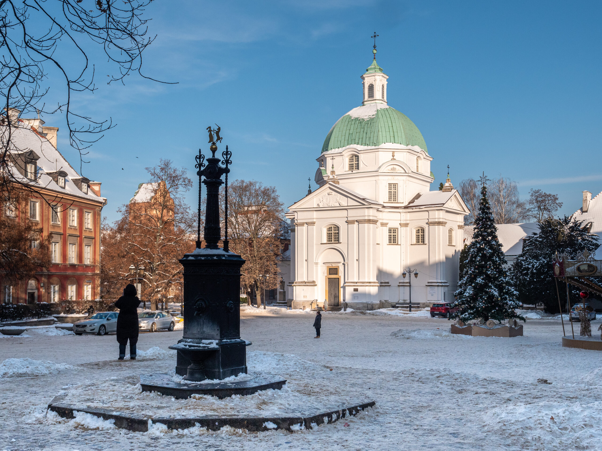 Warsaw, Warsaw New Town, New Town Square, square, pavement, well, stairs, tenement house, 19th century architecture, classical architecture, baroque architecture, arcades, church, monastery