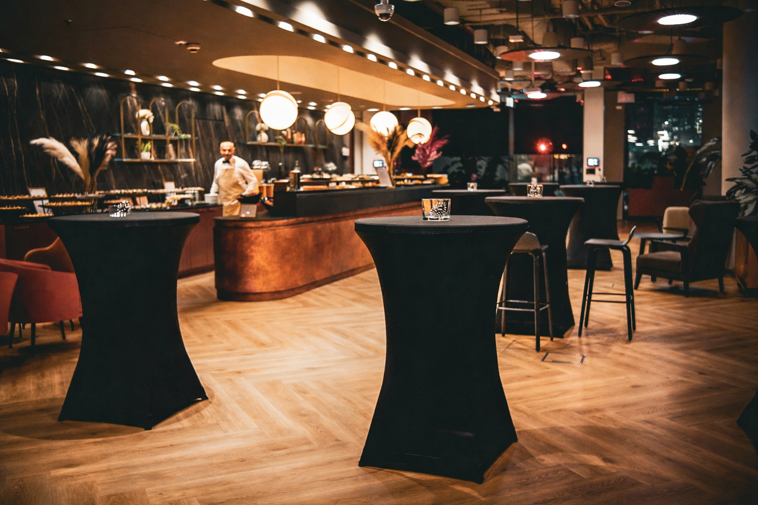 Jej centralnym punktem jest stylowy bar, który w filmowej scenografii może pełnić rolę baru, restauracji, hotelowego lobby bar lub miejsca networkingowego. Otaczająca go otwarta przestrzeń doskonale sprawdzi się jako scenografia dla bankietów, wydarzeń biznesowych, gal czy spotkań towarzyskich.