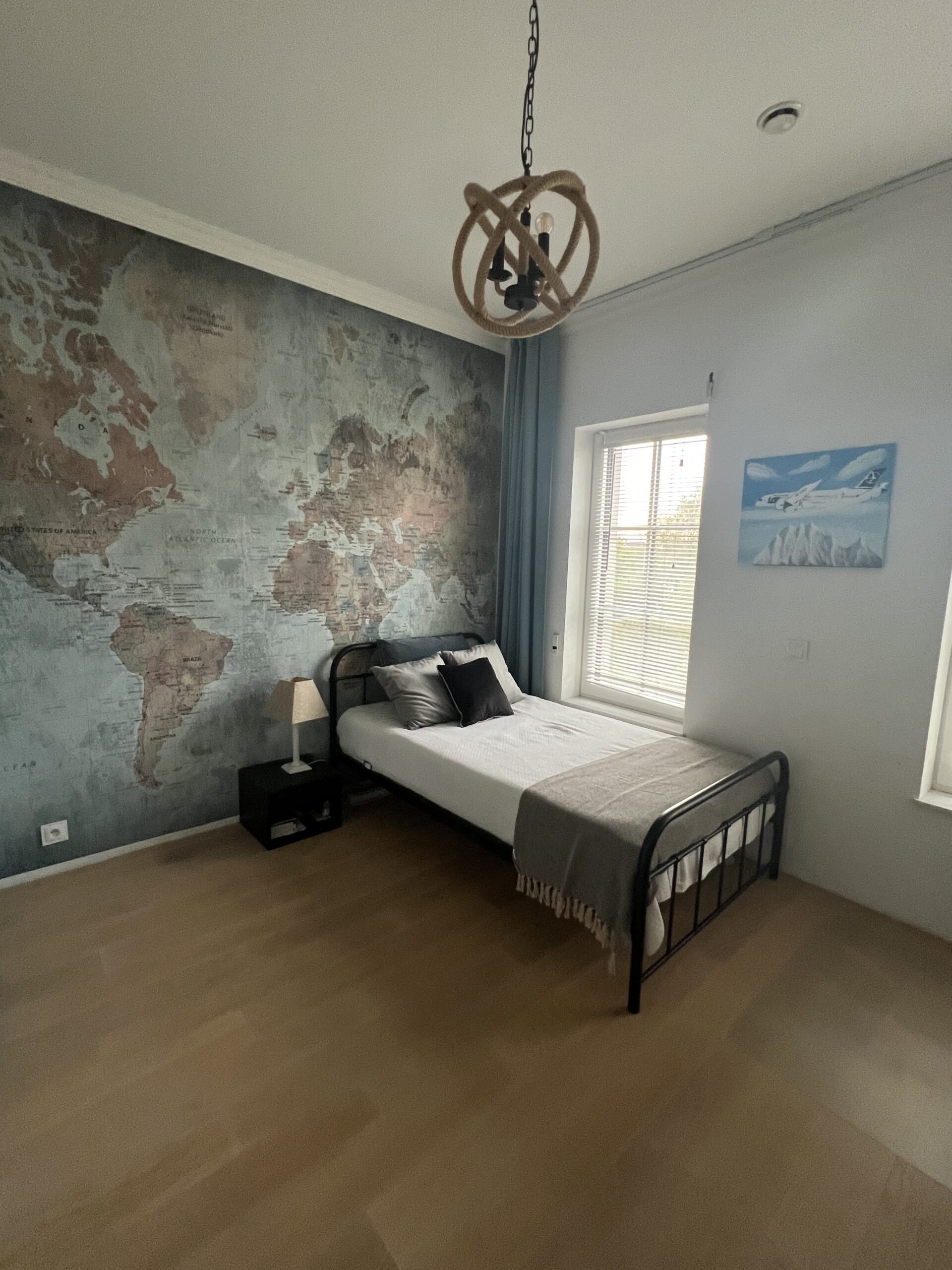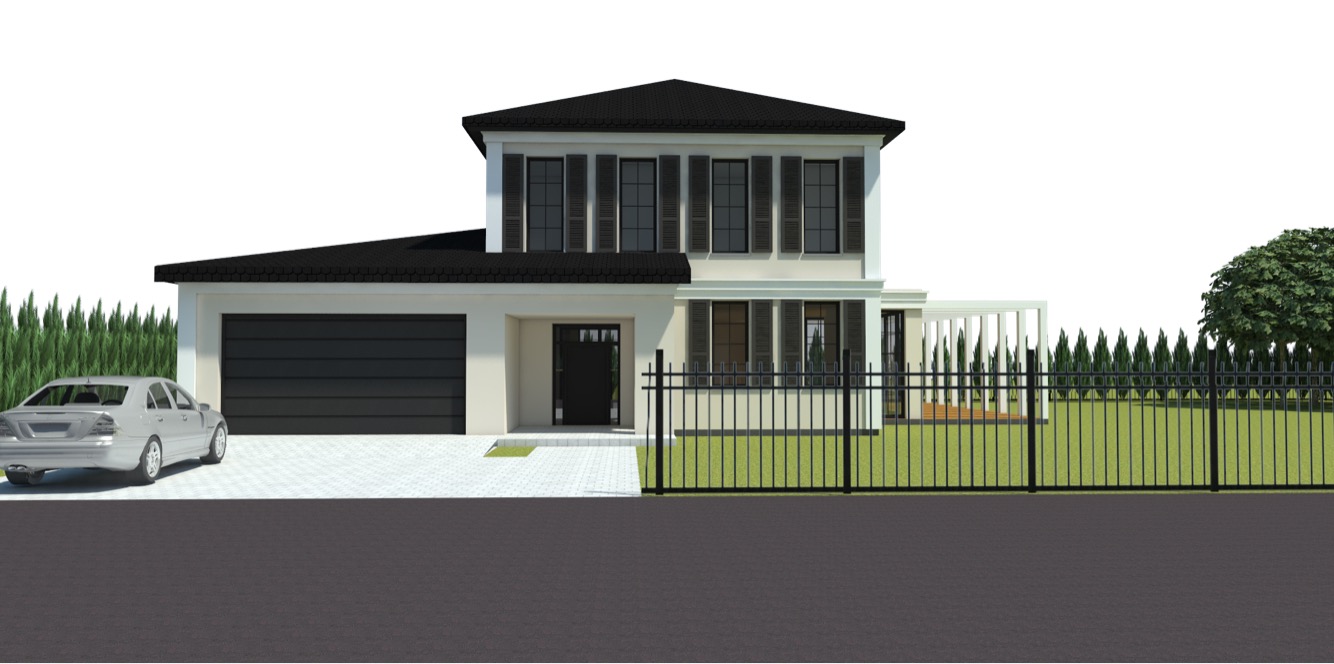 Dom piętrowy z bardzo przestronnym salonem połączonym z ogromną słoneczną jadalnią i kuchnią z wyspą na środku. Najdłuższe okno w jadalni jest rozsuwane w całości jak harmonijka dając możliwość połączenia z dużym tarasem.