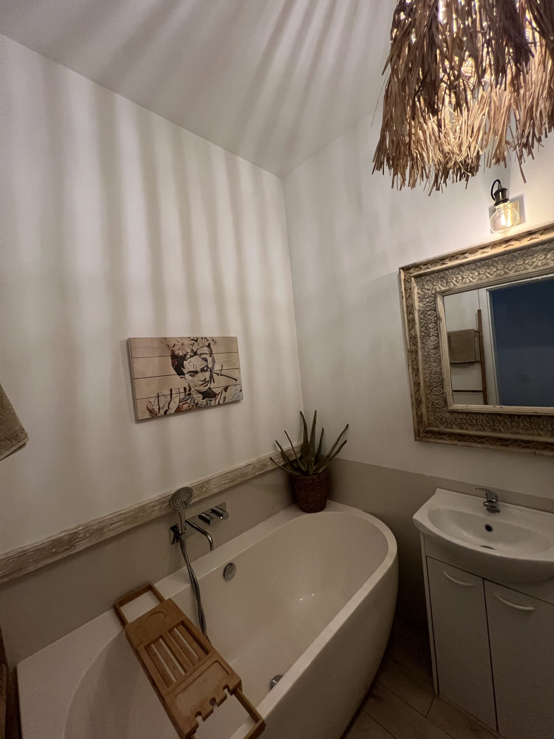 Do domu prowadzi krótki chodnik z żywopłotem, zaś wejście – przez piękne drzwi drewniane w stylu starej kamienicy. Jest to miejsce z pięknie operującym słońcem.