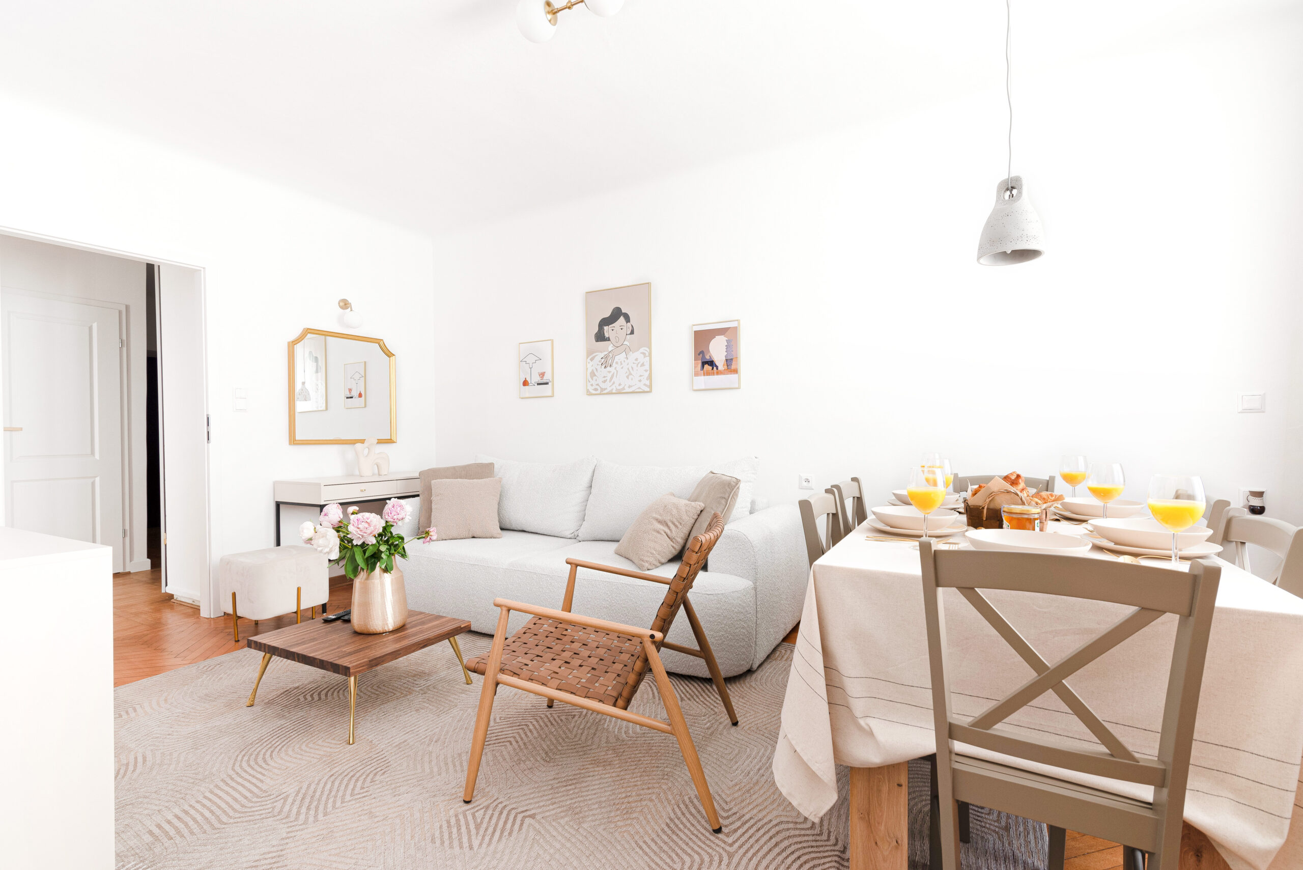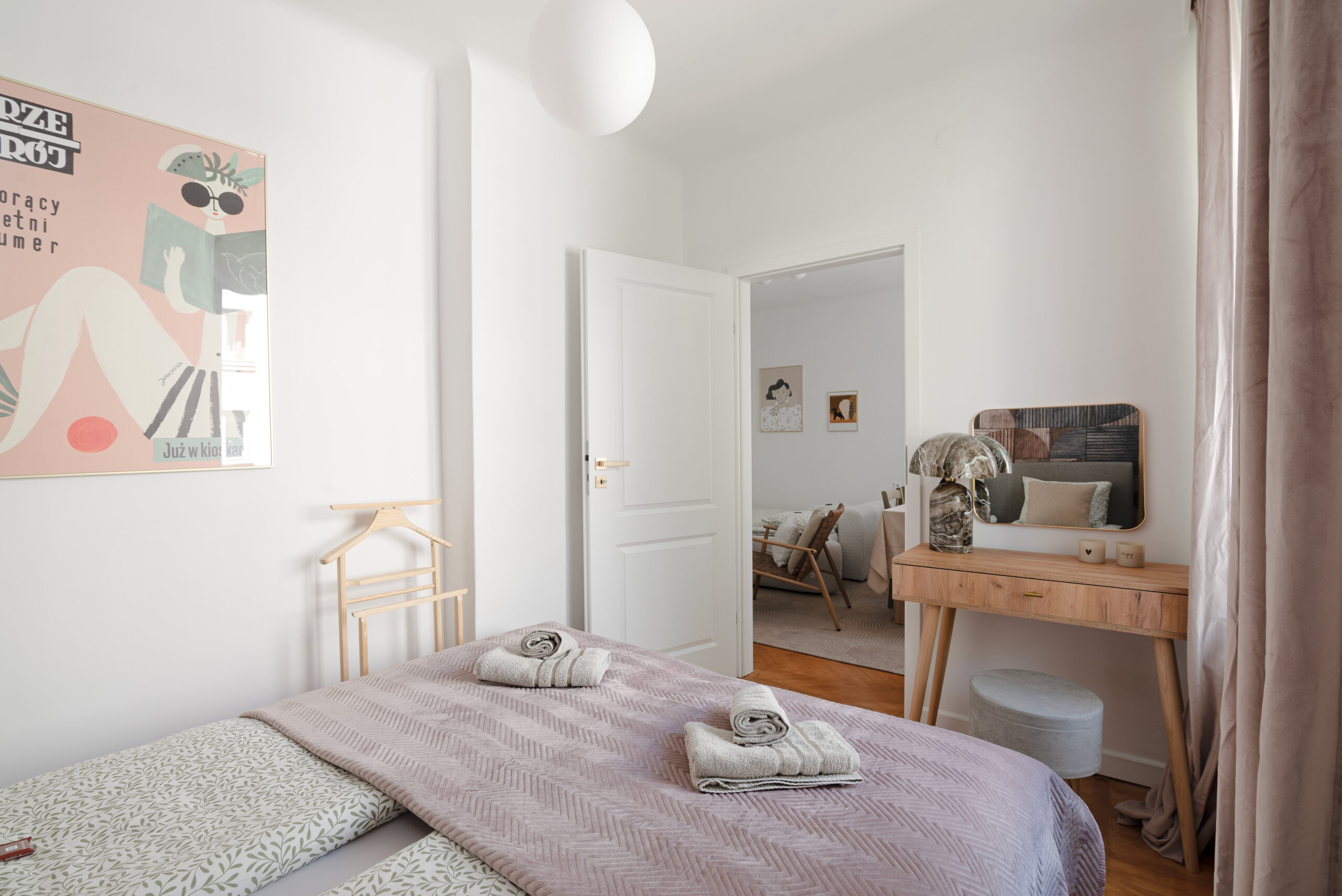 Jasny i elegancki apartament położony w centrum Warszawy (Śródmieście), dostępny jako lokacja do filmów, seriali, reklam oraz sesji zdjęciowych.