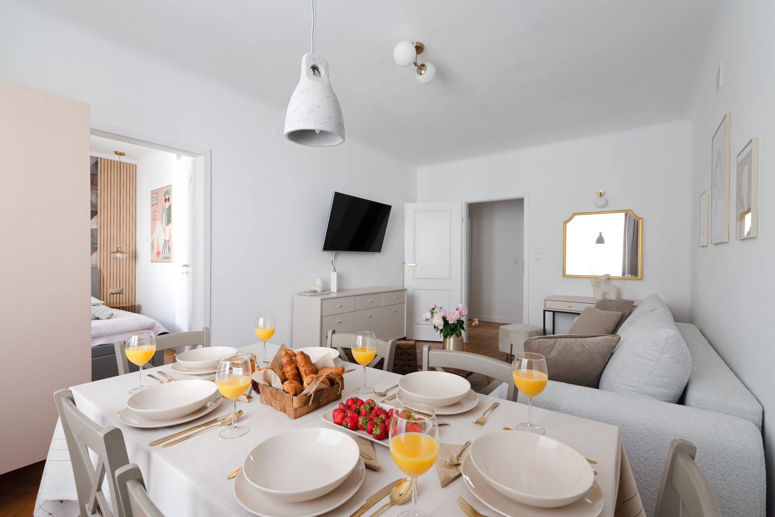Przestrzeń jest estetyczna i uniwersalna, dzięki czemu dobrze sprawdza się w różnych typach produkcji – od scen domowych w serialach po kampanie reklamowe i sesje lifestyle.