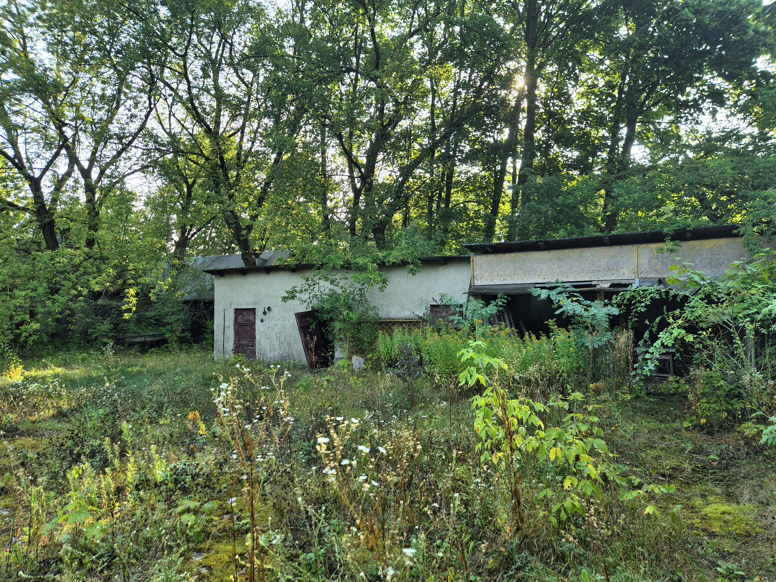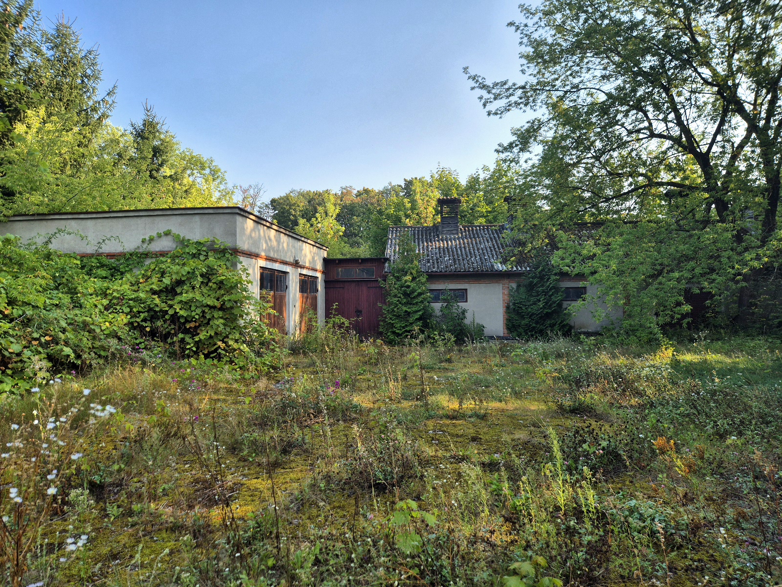 Opuszczone siedlisko nad Zalewem Zegrzyńskim. Dużo dzikiej zieleni.