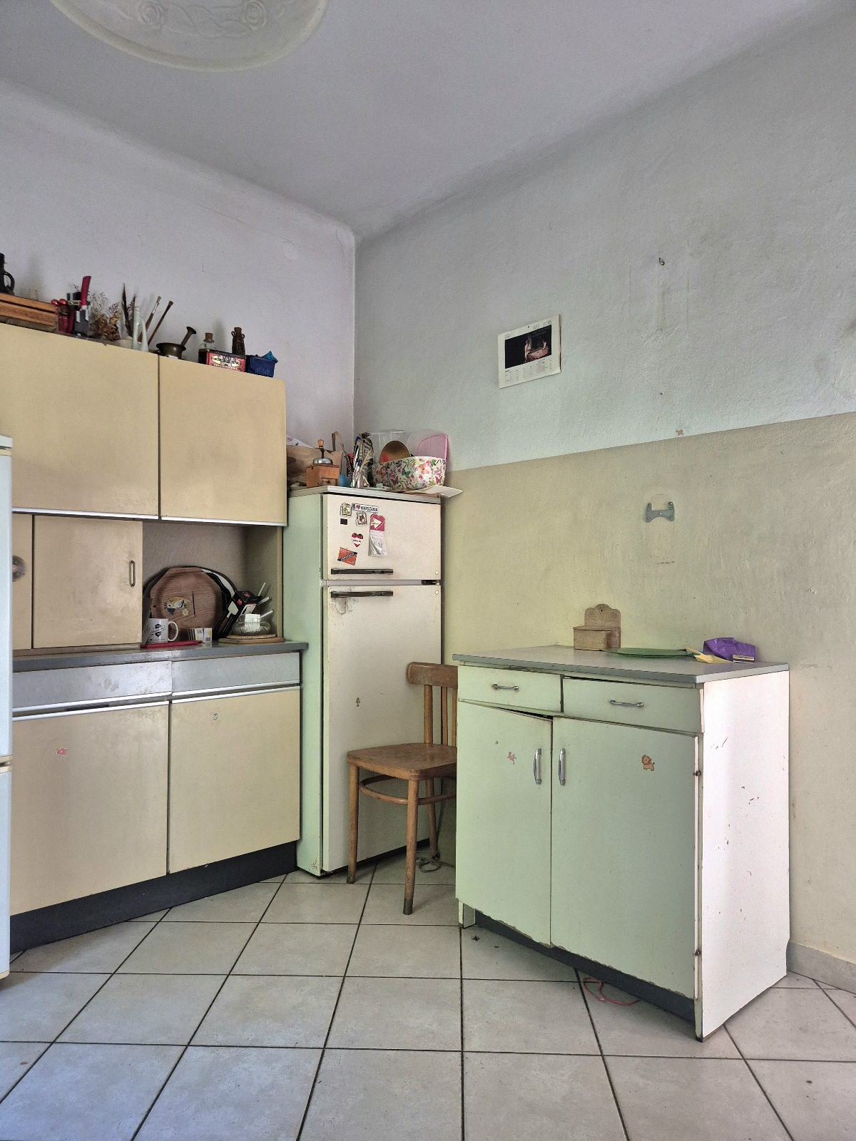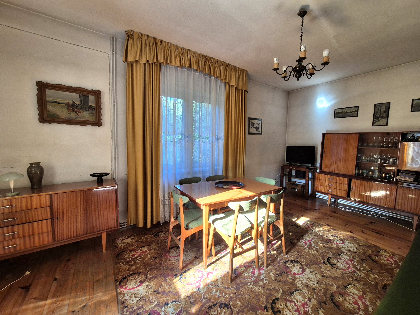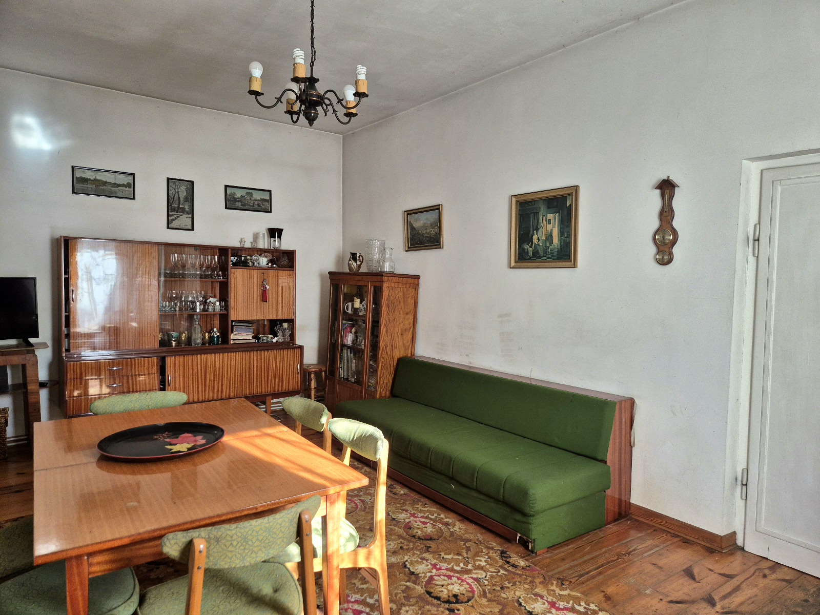 Kilka budynków gospodarczych i dom mieszkalny. Wnętrze domu urządzone w oryginalne meble modernistyczne z PRL-u.