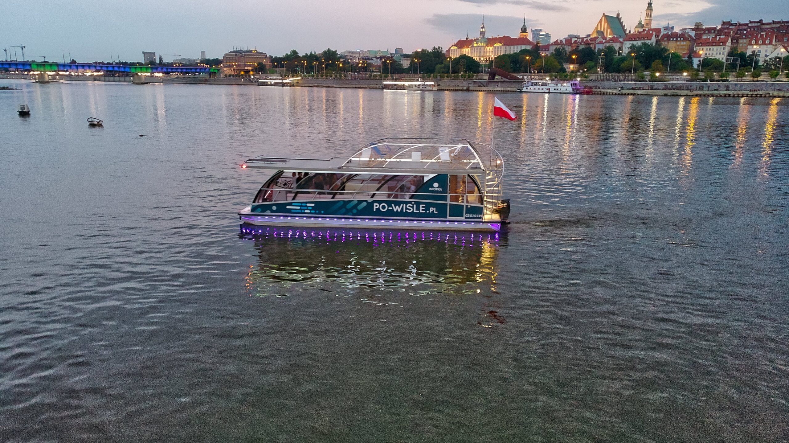 Elegancki statek do dyspozycji do rejsów po Wiśle, przystanku na wyspie/plaży lub nagrań stacjonarnych (np. W Porcie Czerniakowskim).